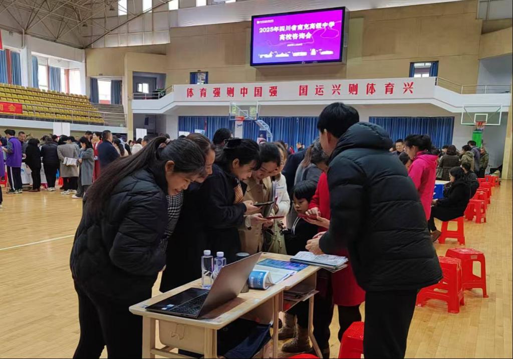 招生宣传咨询会在南充高级中学嘉陵校区体育馆举行,现场气氛热烈,秩序井然。面对考生和家长对我校办学特色、专业优势、人才培养、招生政策及历年录取情况等疑问,陈老师全面、细致、耐心地解答,并介绍了我校在“新文科”建设背景下,学院依托国家一流建设专业积极布局改造传统专业的措施,确立了“英语+大数据”和“翻译+国际传播”两个跨学科融合方向,培养中国文化国际传播新目标所需的复合型外语专业人才,鼓励优秀学子积极报考。通过此次招生宣传咨询,不仅为南充高级中学的考生和家长提供了直接的报考指导服务,也进一步加深了当地师生对我校综合实力和专业特色的了解,有效搭建了高校与中学之间的沟通桥梁,为我校2026年吸引优质生源奠定了坚实的基础。