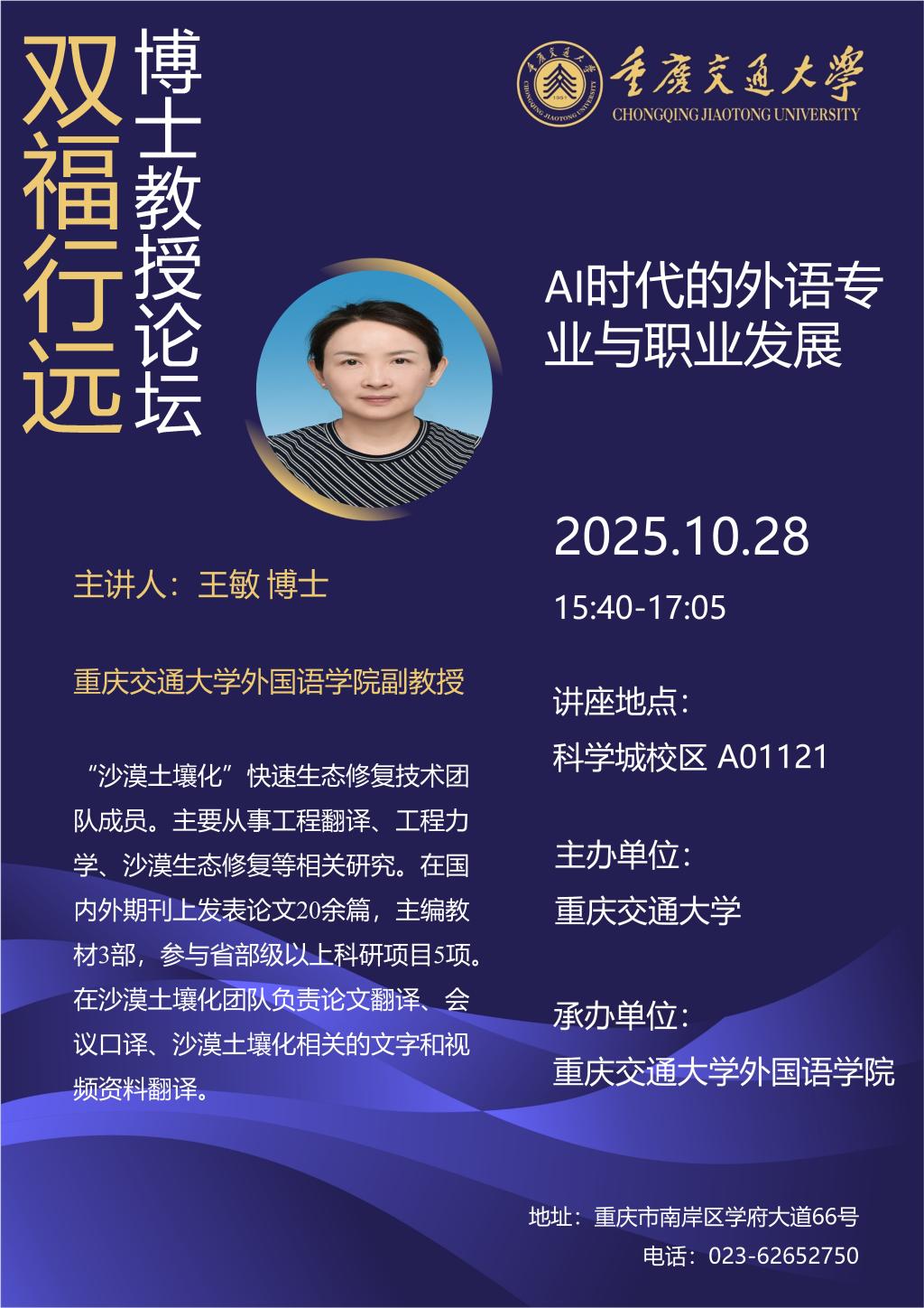 【双福·行远】博士教授论坛预告——王敏博士 AI时代的外语专业与职业发展