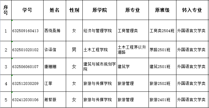 外国语学院2026年转专业(拟转入)名单公示