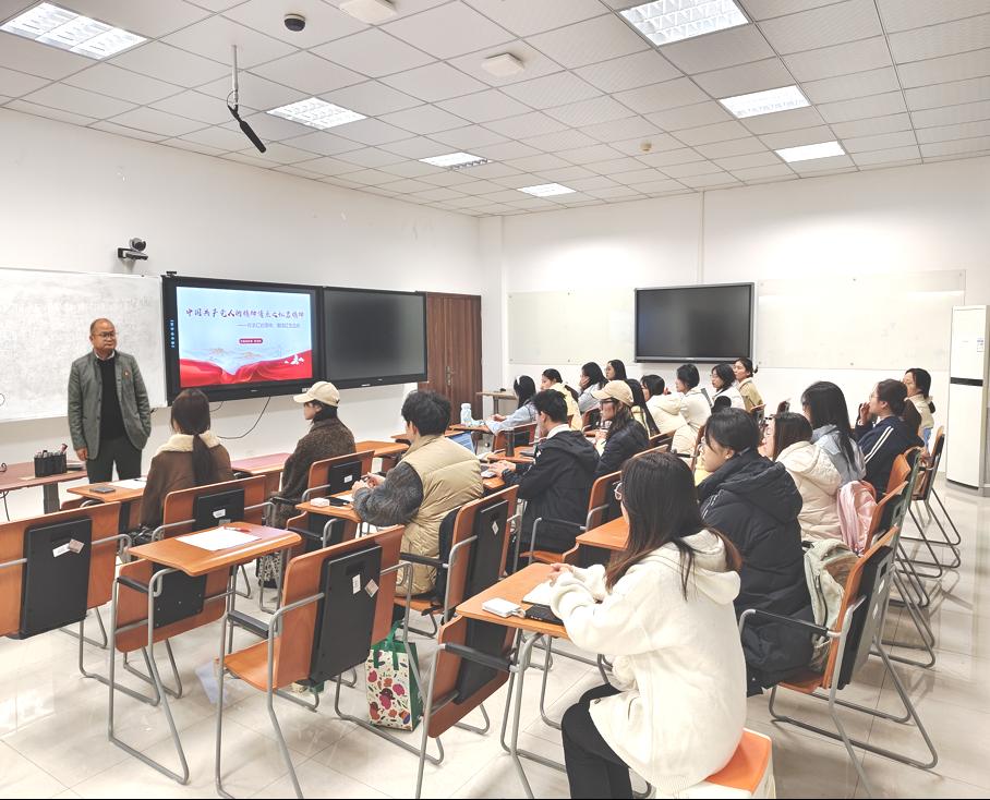 党委组织部组织科科长黄顶新以《传承红岩精神,赓续红色血脉》为题,通过鲜活历史故事与沉浸式精神解读,重现革命先辈"威武不能屈、贫贱不能移"的钢铁意志,激励外国语学院学子将红岩精神转化为投身交通强国、服务重庆内陆开放高地建设的奋进力量。
