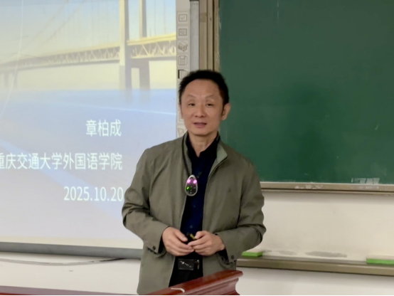 为引导学生深入了解外语专业发展脉络,明确学习方向与成长目标,2025年10月20日,外国语学院在科学城校区A01237教室举办了专题讲座“外语专业的昨天、今天与明天”。本次讲座由外国语学院章柏成教授主讲,吸引了学院百余名本科生参加。