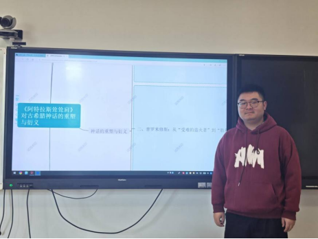 刘小豪同学汇报的主题为“《阿特拉斯耸耸肩》对古希腊神话的重塑和衍义”。他指出,该小说基于兰德“客观理性哲学”框架,通过描绘“掠夺者”与“创造者”的冲突、高尔特领导的“创造者”罢工以及创建“高尔特峡谷”乌托邦,体现了理性利己主义原则。兰德将文学创作与哲学思想相融合,对古希腊神话意象进行客观主义哲学内涵重塑,为其新道德体系构筑了一部现代道德史诗,这也反映出古希腊神话在现代西方文学创作中持续的生命力与适应性。