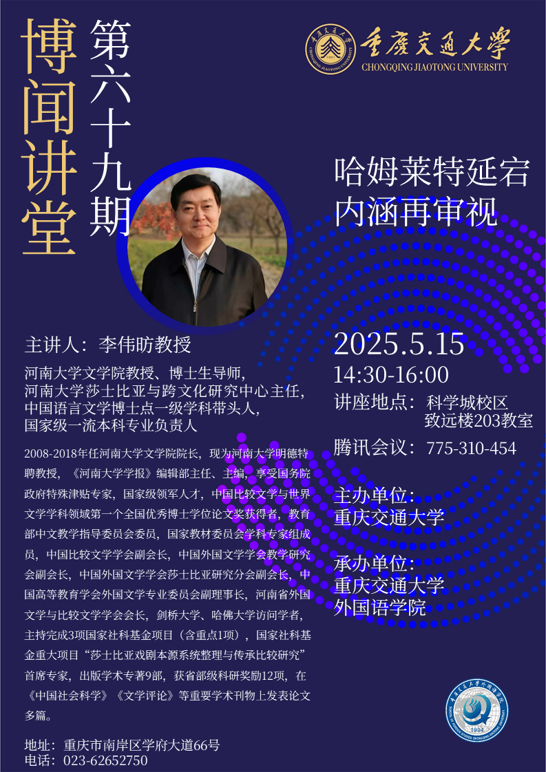 “博闻讲堂”第69期预告——李伟昉教授 哈姆莱特延宕内涵再审视