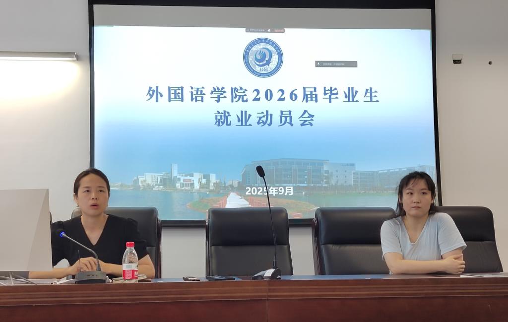 为进一步推动2026届毕业生实现高质量充分就业,9月9日上午,外国语学院在致远楼319会议室召开2026届毕业生就业动员会。学院党委副书记文亚星、教师张雪璐、2026届毕业班辅导员胡媛媛及全体毕业生参会。