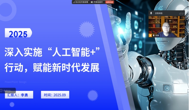 2025年9月25日晚,外国语学院大学外语教研室通过腾讯会议组织全体教师开展“深入实施‘人工智能+’行动,赋能新时代发展”专题教研活动,集中学习《国务院关于深入实施“人工智能+”行动的意见》(以下简称《意见》),并结合外语教学实际展开研讨。